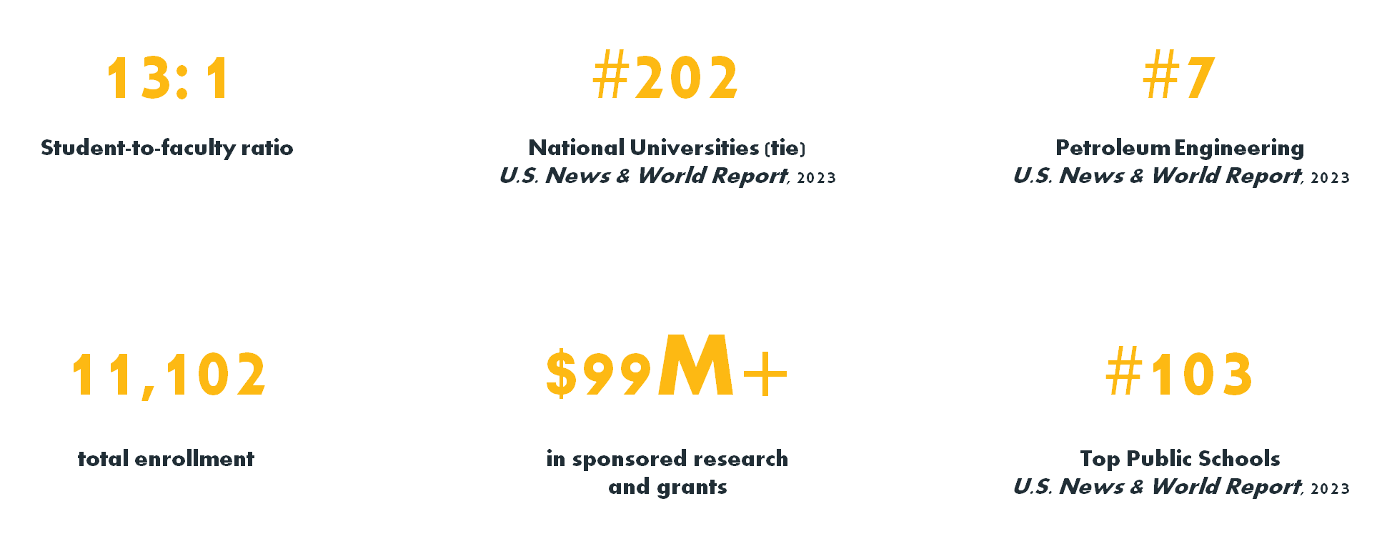 / UOW FACTS 1887년에 설립된 주립대학교 재학생: 약 12,249명 (국제 학생 4.5%, 학부생: 9,807명, 대학원생: 2,442명, 한국 학생: 약 26명) 미국 대학 랭킹 202위 (U.S News & World Report 2023) 미국 공립대학 랭킹 103위 (U.S News & World Report 2023) 주요 전공순위: #7 석유공학 & #53 약학 교수 학생 비율 13: 1 주요 전공으로는 석유공학, 약학, 치위생, 간호학, 인체학 등