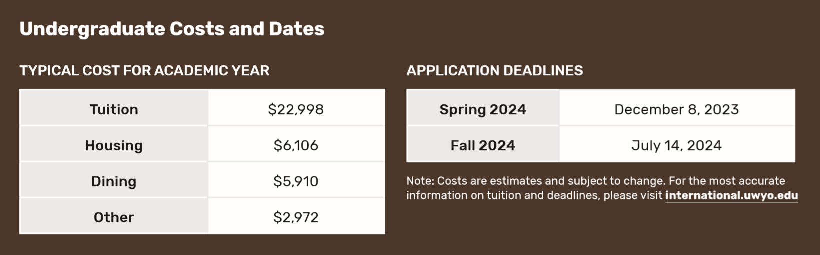 -미국 평균보다 4% 낮은 생활 물가 주정부의 전폭적인 지지를 받는 와이오밍 대학교의 연구 기반은 학부생들에게 대학원 수준의 연구를 수행할 수 있는 다양한 기회를 제공합니다.
