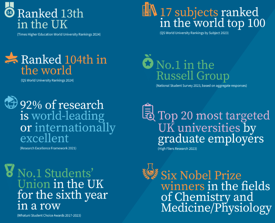 1905년에 설립된 이 대학교는 영국의 아이비리그인러셀그룹(Russell Group) 소속교로, 세계적으로 뛰어난 연구와 교육으로 유명하답니다.